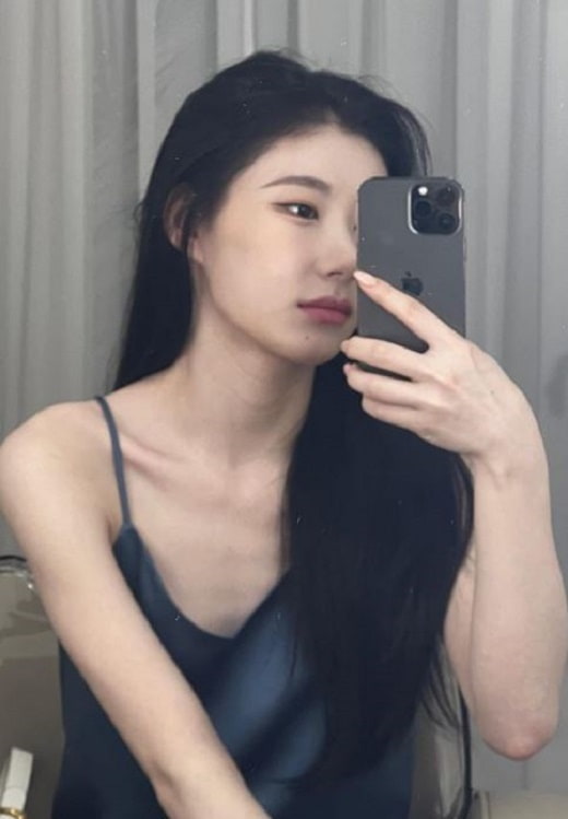 상표까지 비치는 얇은 바디수트 시스루 프로미스나인 이채영
