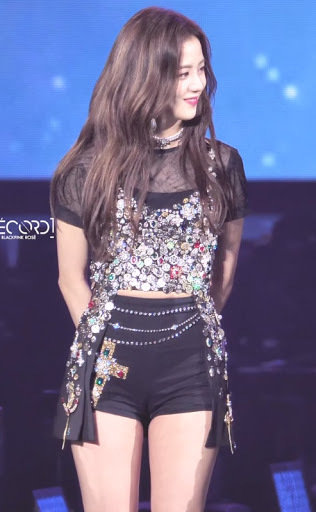 파란 트로피컬 의상 핫팬츠 블랙핑크 지수
